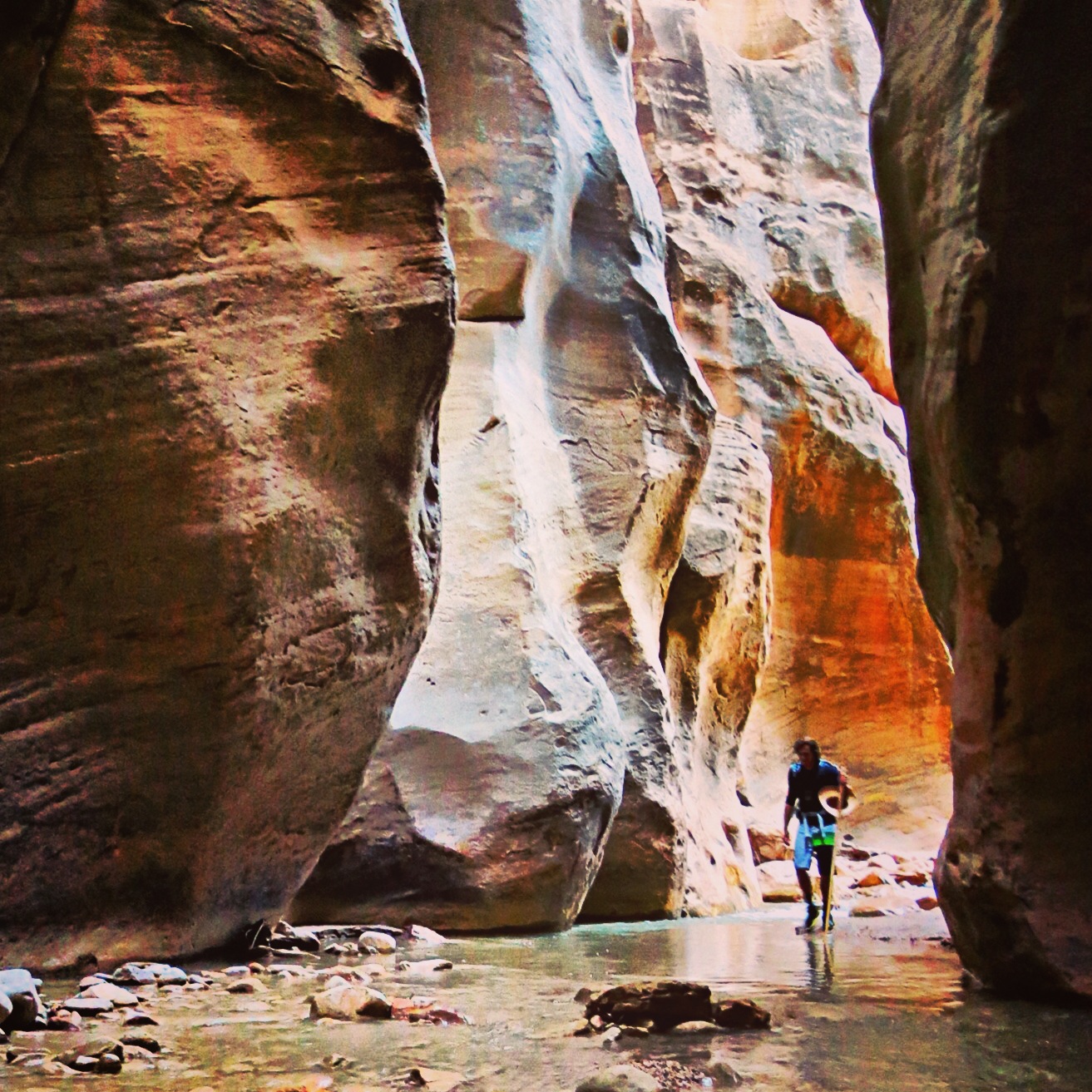 When I got back to Utah, I got a text from a friend asking if I wanted to hit up the narrows in a few weeks. “The Narrows” is a 16 mile hike through the river canyon that eventually carves out Zion National Park. It’s been on my checklist for a while so I didn’t hesitate to say “I’m In.” I didn’t realize he meant the following weekend! On a days notice, I rounded up my friend Dimo, met up with Craig and his girlfriend and took off to Zion. We got a tip on a rad camping spot from my roomate Mike and hit the weather perfectly. (no chance of flash flooding and great temps). 3 days later…